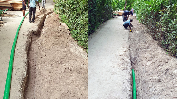 Trench prepared for KPS pipe in the Maldives | © KPS