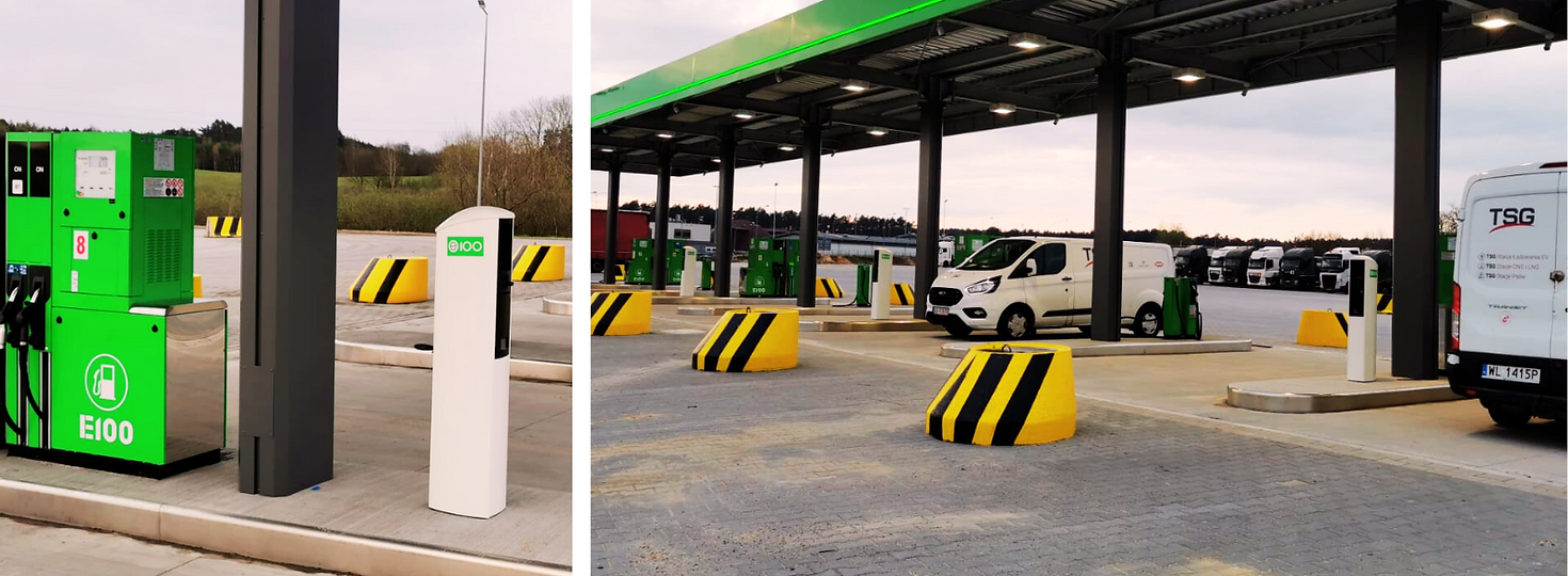 Thanks to the newly installed equipment, the service station is capable of servicing up to 1,200 vehicles per day. Coupled with the second E100 station in the Port 2000 Torzym area, this total rises to 1,600 refuels per day. The Port 2000 Torzym has additional benefits from its facilities, which include free parking, a restaurant, toilets, showers, a self-service laundry unit, a supermarket, and a currency exchange office.